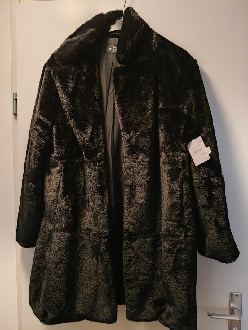 Fraaie winterjas dames, zwart immitatiebont, maat 42/44 (L).